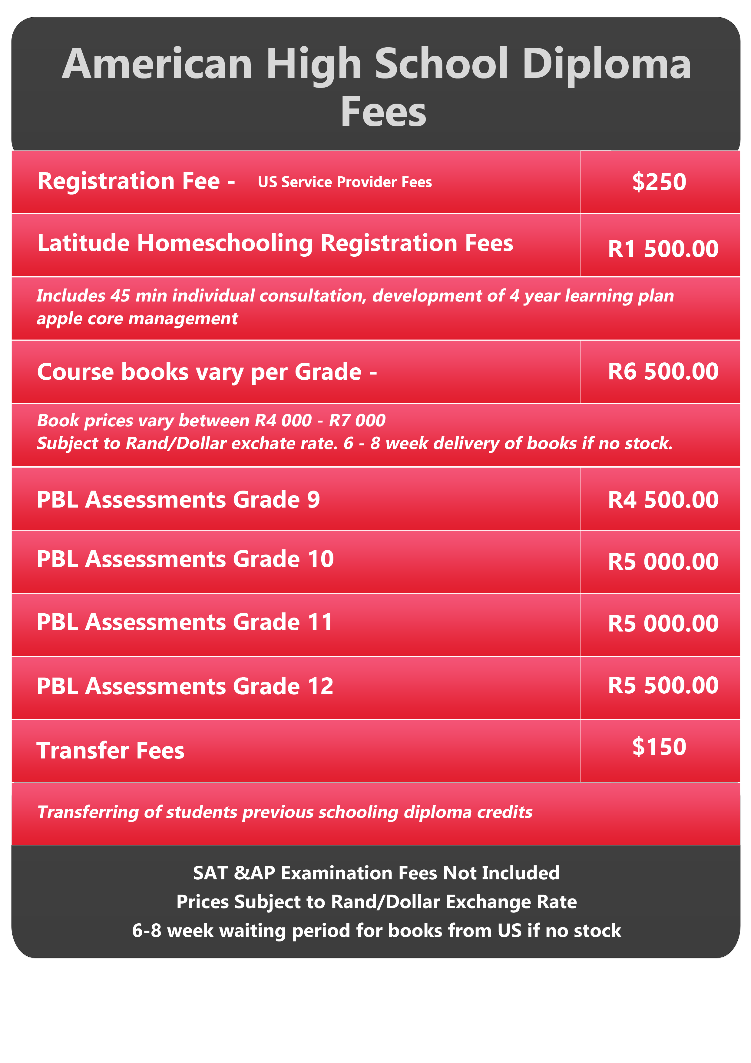 The American High School Diploma is typically studied over a period of 4 years from Grades 9-12.