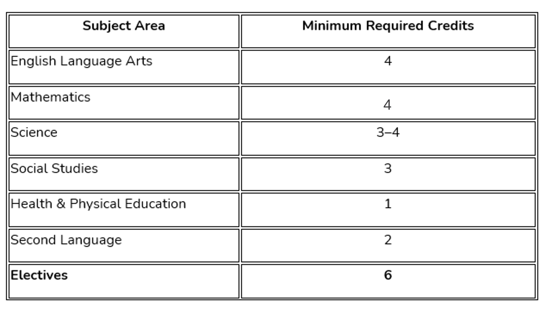 Learners need to complete six elective credits from Grades 9-12, core subjects can also be taken as electives. Learners are encouraged to select electives that align with their passions, post-school plans, and unique talents.